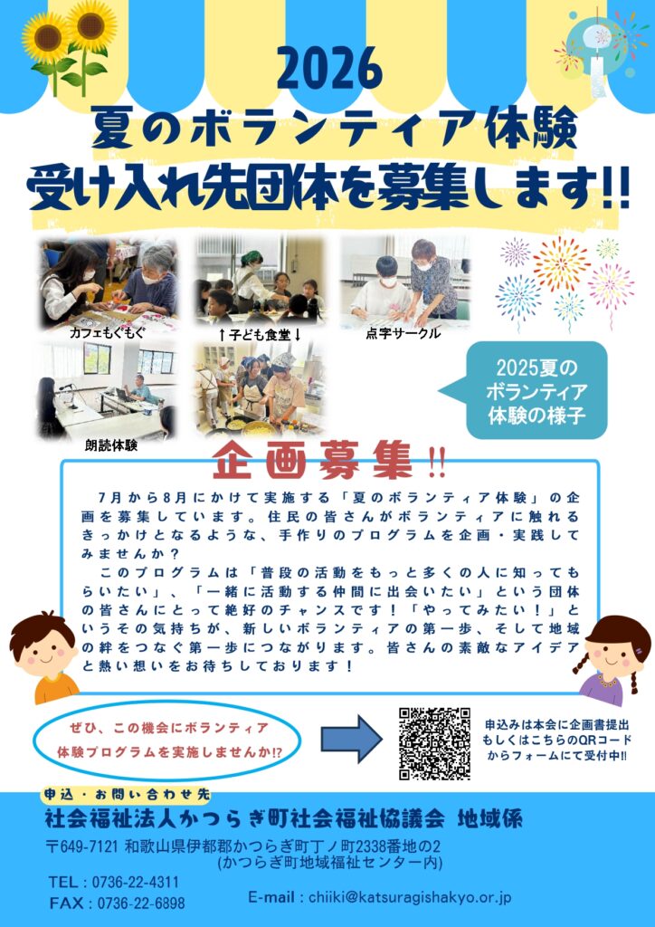 【実施要項】2026 かつらぎ町夏のボランティア体験月間